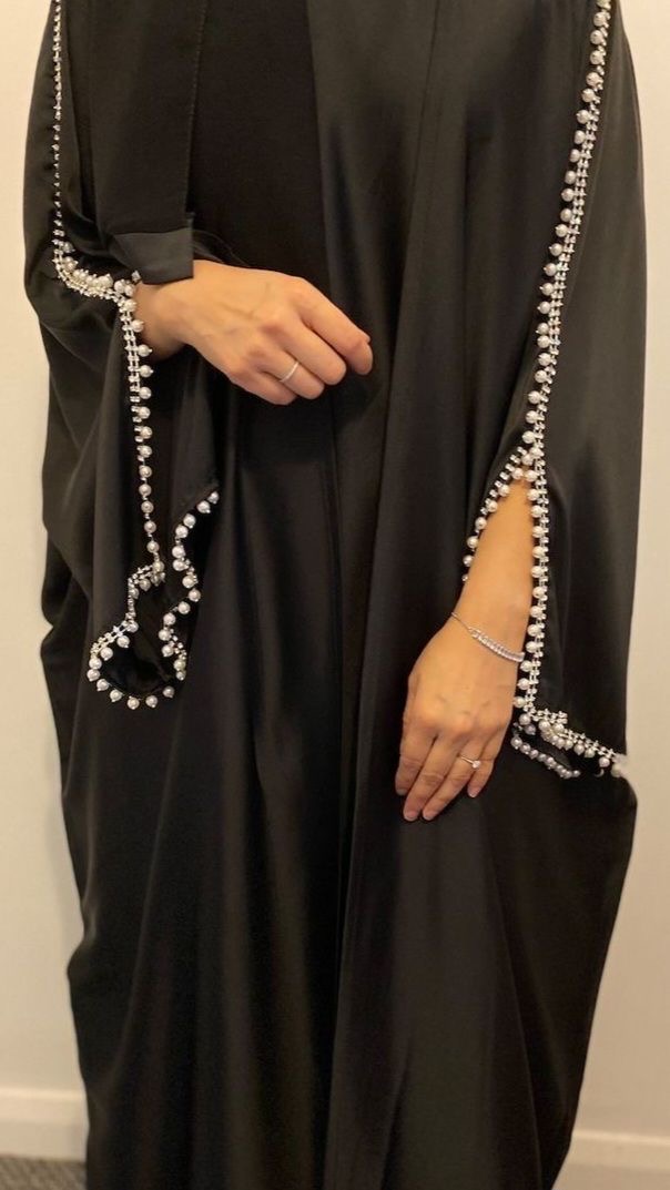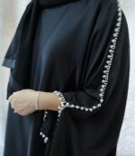 Simply stunning Nida abaya with white beads and silver stone detailing.