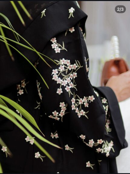 The Silver Leaf Abaya is crafted from premium Nida fabric and features elegant silver leaf embroidery. It comes with a matching scarf, also adorned with the same beautiful work. Simple yet striking, this abaya is perfect for those who appreciate understated elegance and want to let the details speak for themselves.
